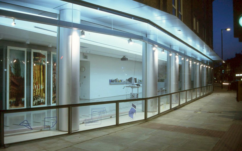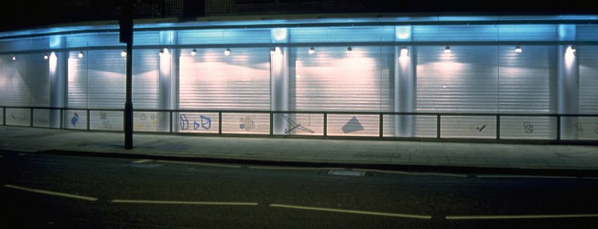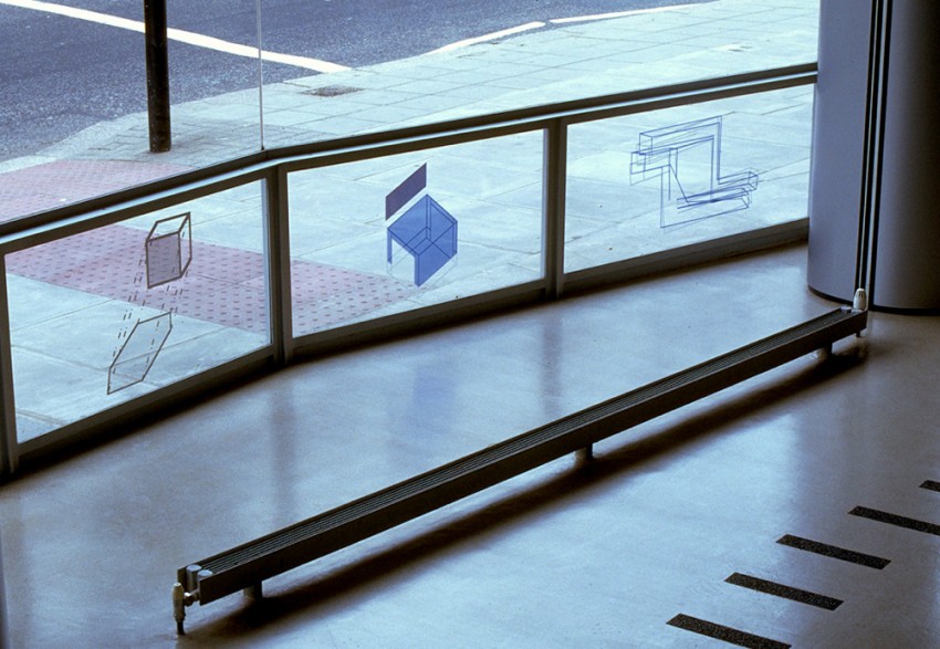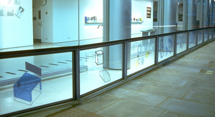 The project involved printing onto architectural glass panels to provide a visually exciting facade for the 30M long glass gallery window of the new Lottery funded London Print Studio. Exploring themes of spacial awareness communicated through a graphic visual language, Pearman presents a series of sharp-edged glass artworks that interact with the streetscape,